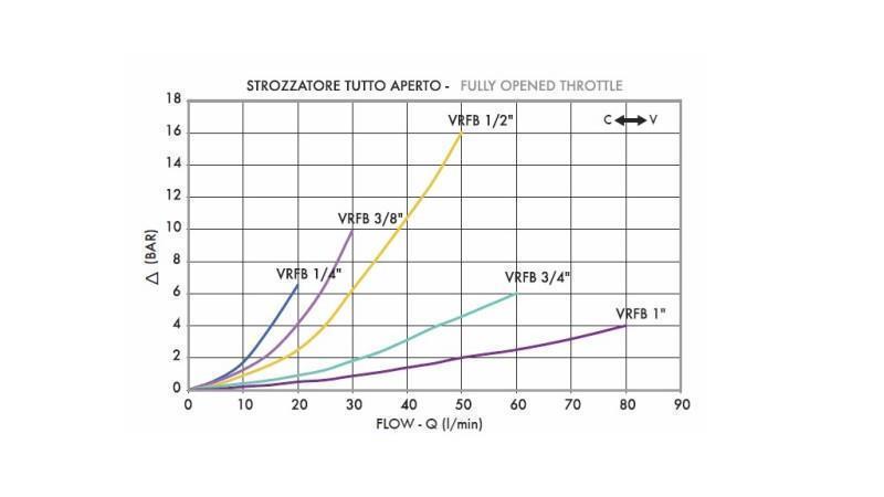 Das Ventil wirkt als Durchfluss Regulator in beide Richtungen. Da das Ventil den Druck nicht kompensiert in freier Leitung, ist der Durchfluss von dem Druck und Ölviskose abhängig.