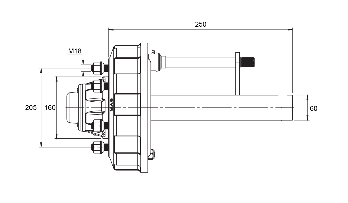 HALBACHSE MIT BREMSEN - 2700 kg (6 SCHRAUBEN) - 250 mm