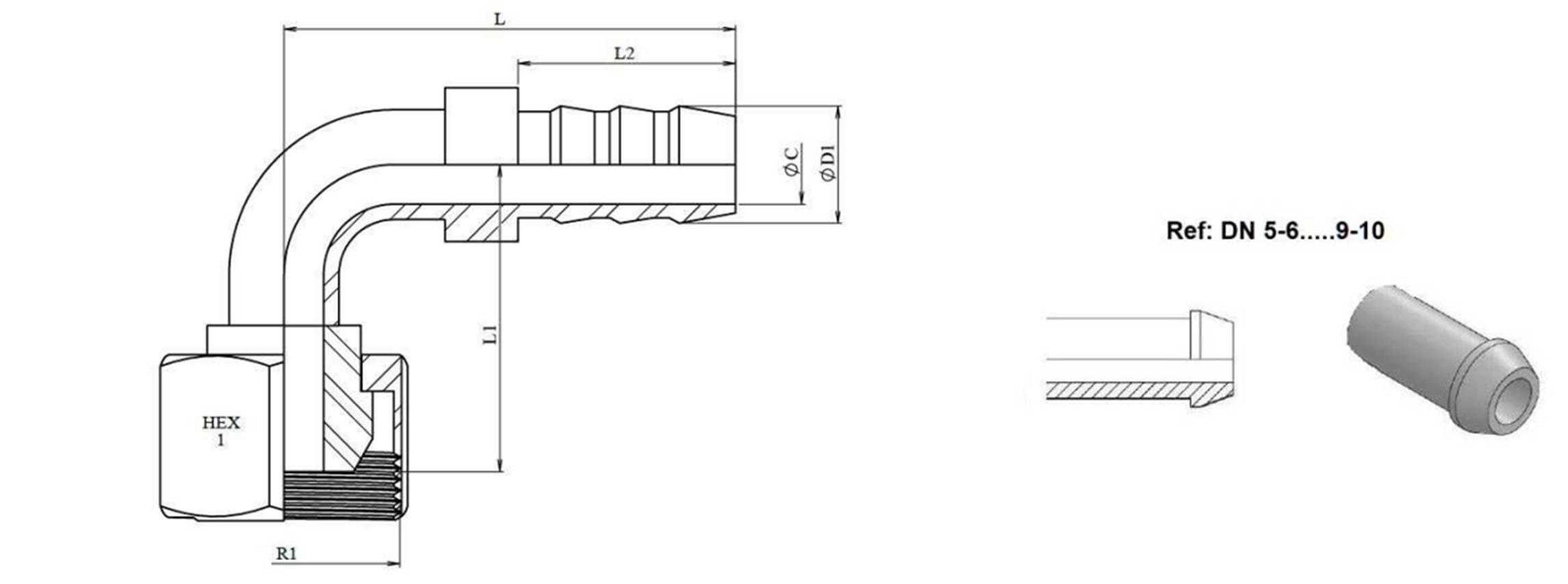 HYDRAULIKANSCHLUSS - MÄNNLICH 1" FÜR GUMMISCHLAUCH FI 25