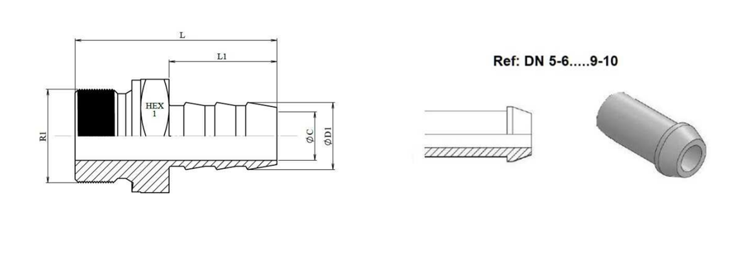 HYDRAULIKANSCHLUSS - MÄNNLICH M22x1,5 FÜR GUMMISCHLAUCH FI 12 - 13