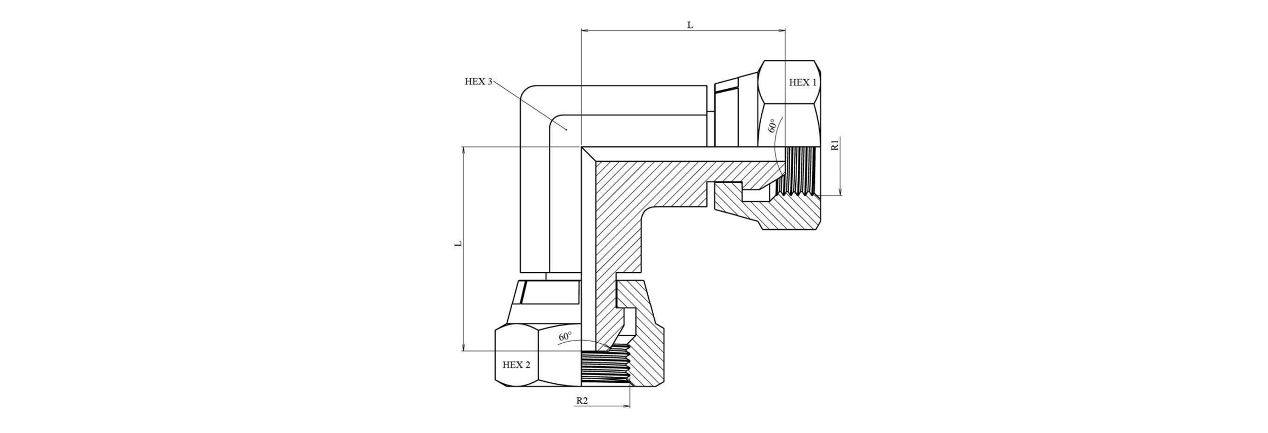 HYDRAULISCHER 90°-KURZWINKEL DOPPEL-SCHWENKMUTTER BSP 3/4