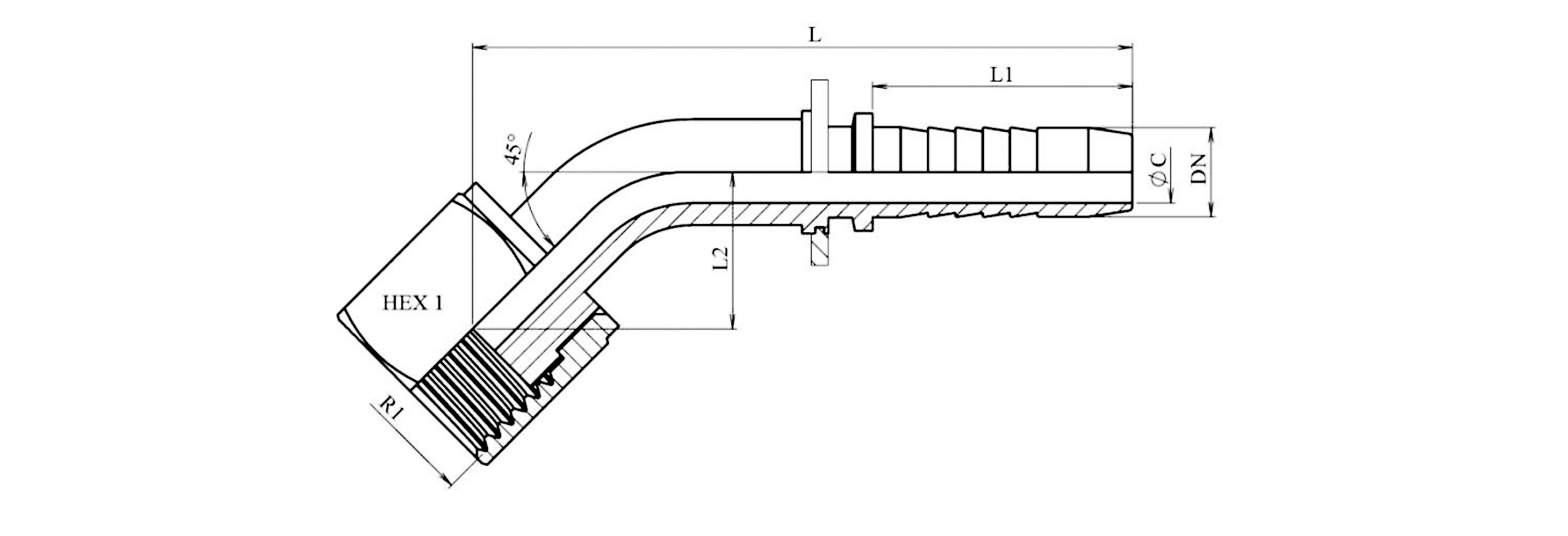 HYDRAULISCHER ANSCHLUSS DKORFS WEIBLICH KNIE 45° DN25-1"11/16-12