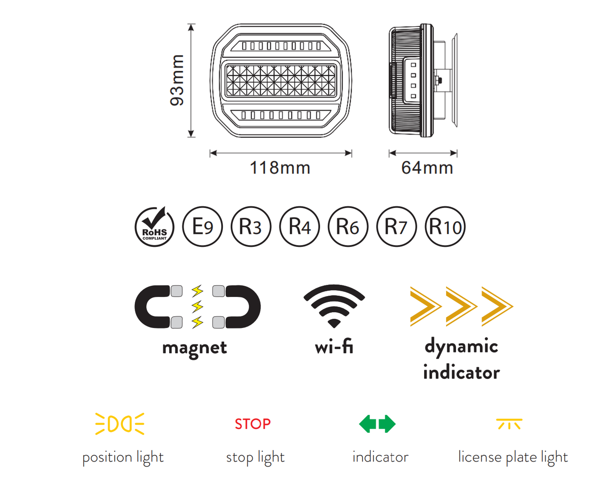Homologation: | E9, R3, R4, R6, R7, R10, ROHS |
