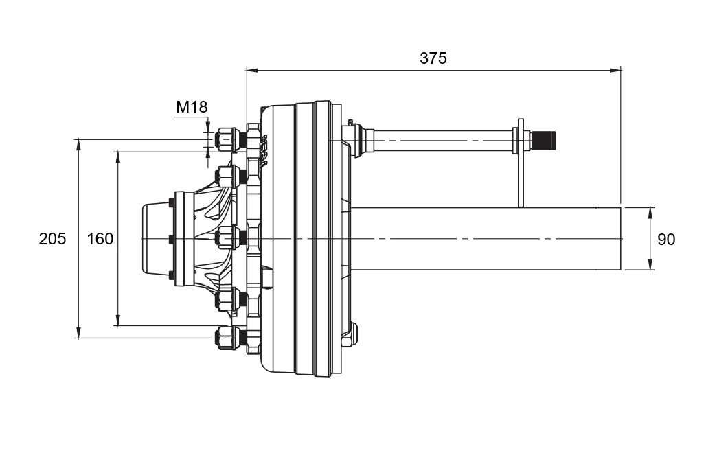 Napínací osa umožňuje použití standardních ráfků se šesti šrouby a zajišťuje snadnou montáž.