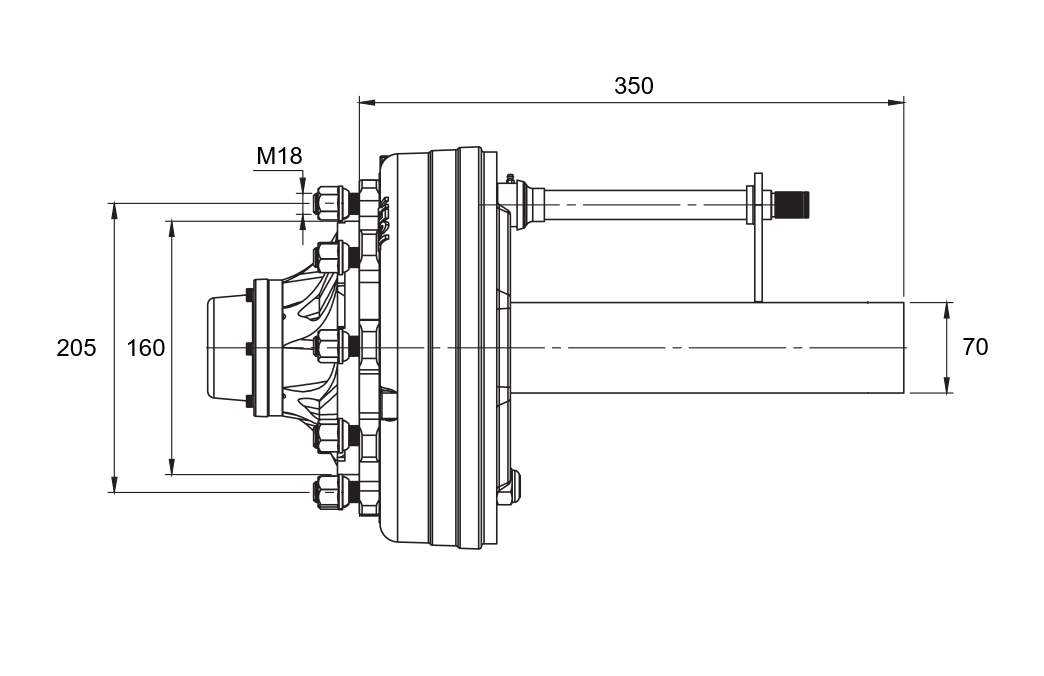 Náprava nápravy je určena pro použití na různých typech přívěsů s brzdovým systémem. Délka nápravy je 250 mm, s nosností až 3600 kg.
