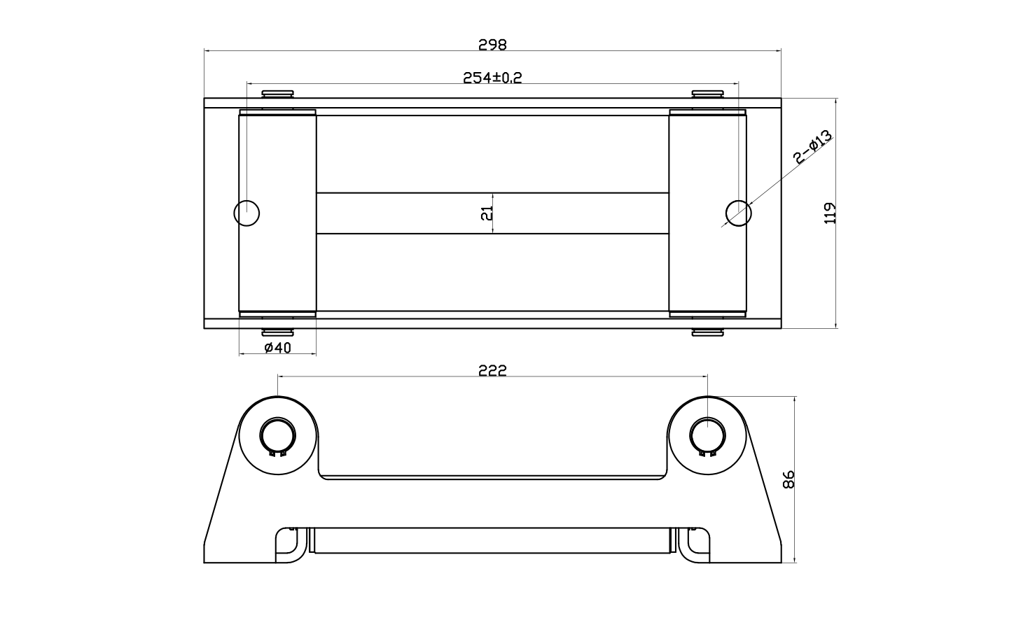 298 (laius) x 119 mm (kõrgus)