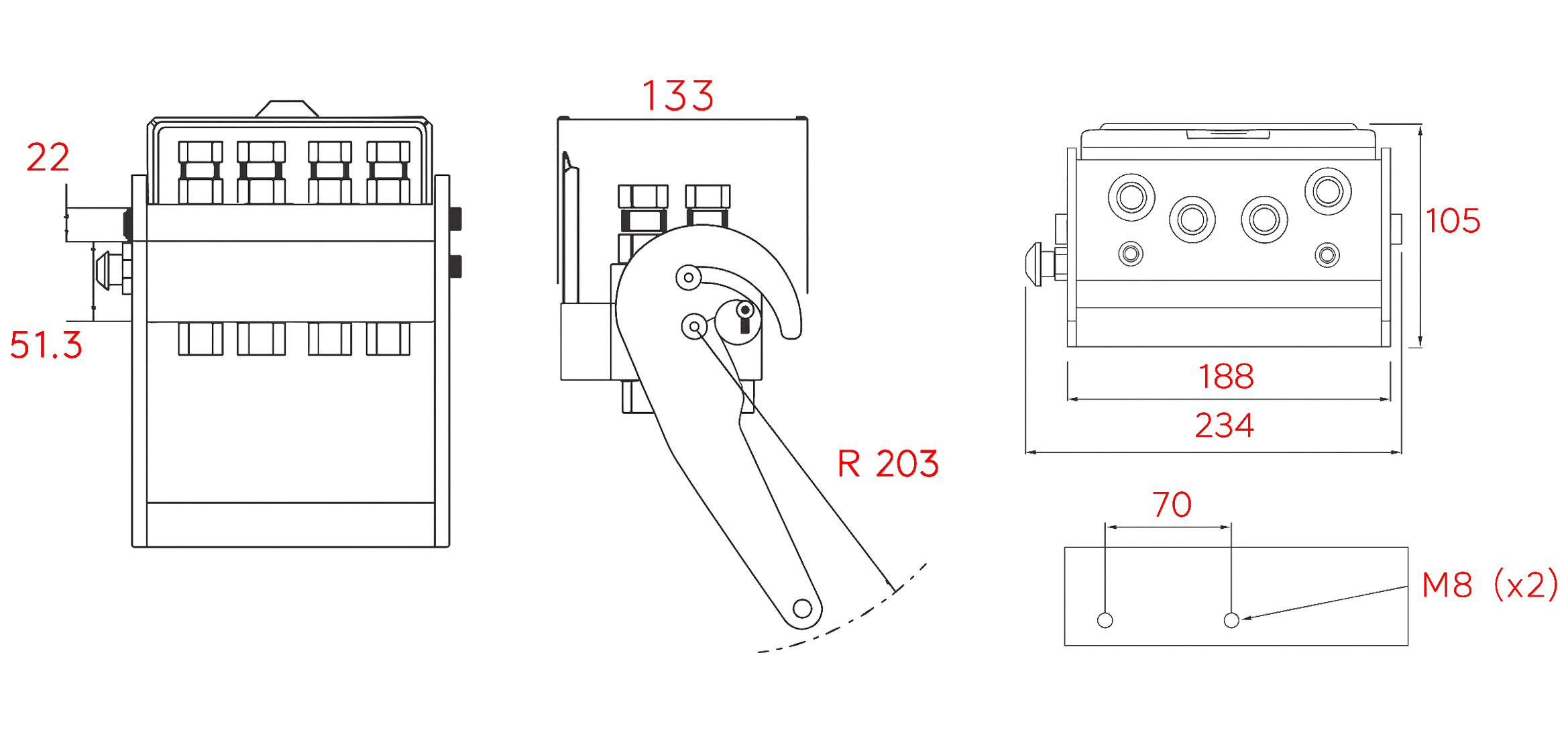 Takšni bloki se uporabljajo povsod, kjer je treba več hidravličnih vodov hitro in varno priklopiti/odklopiti: