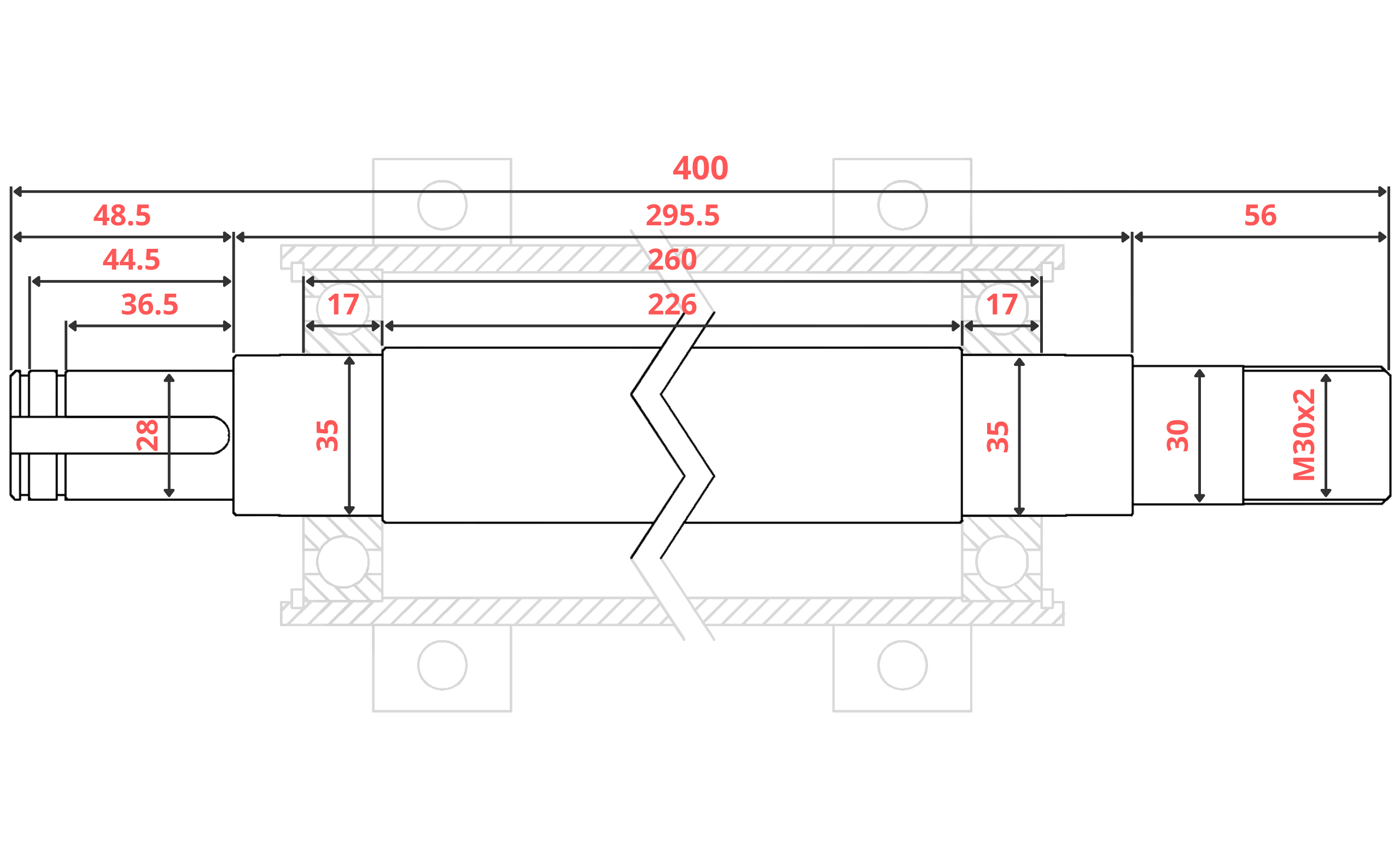 Kompaktna in robustna osovina za krožne žage, pripravljena za hitro vgradnjo. Iz debelostenske litoželezne cevi in 2x6207 jeklenih ležajih, zato zagotavlja miren tek, dolgo življenjsko dobo in zanesljivo vpenjanje žaginega lista. Levi navoj M30×2 omogoča varno in ponovljivo zategovanje.