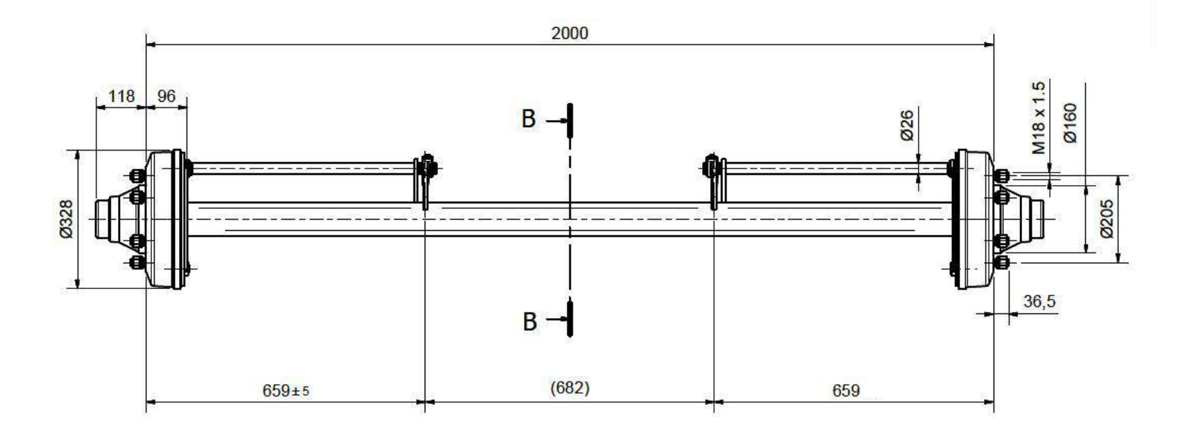OSOVINA ZA PRIKOLICO Z ZAVORAMI (6 VIJAKOV) - 7200 kg - 2000 mm