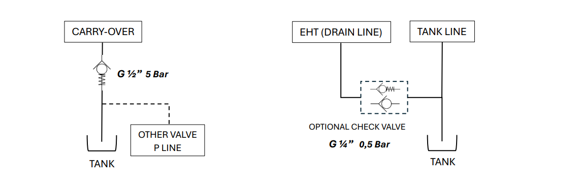 - T1 – trycköverföring (Power Beyond – ”PB”) + 8 bar fjäderbelastad backventil