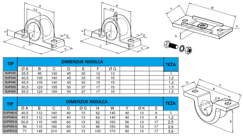 STØTTER TIL TELESKOPCYLINDRE